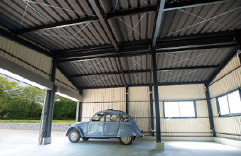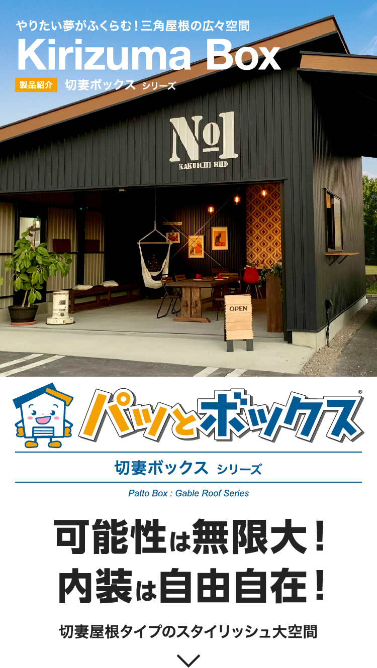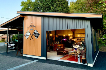 ガレージの活用はプライベートな利用だけではありません。 パッとボックスは頑丈な構造で耐食性に優れた特長をもち、さらに切妻風屋根、深い黒色が美しくビンテージ感のある壁面、スタイリッシュな木目調の破風など、その優れたデザイン性は店舗の利用にも適しています。お店オープンの夢をパッとボックスで実現を!