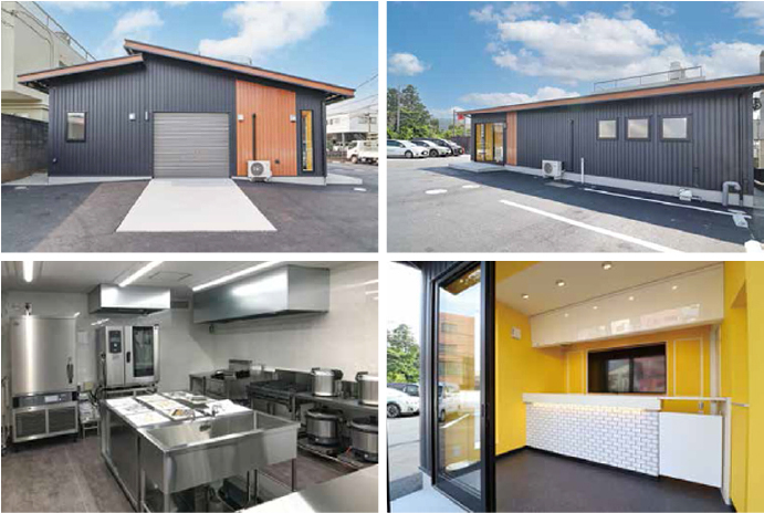 奥行き12mを活かし、奥行き方向に搬入口を設置。店舗設計の会社とタッグが組まれたことで、動線とHACCP対策を考慮した内装が完成。三角形のお洒落な切妻屋根のデザインが店舗のイメージをお洒落なものにしています。