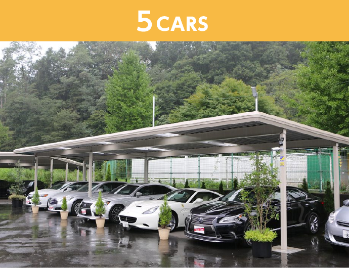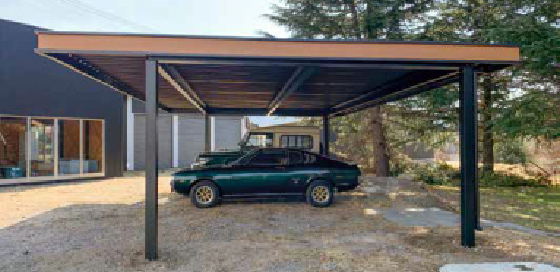 すべての梁に頑丈なH鋼を使用しているため、奥行きのなかに中間柱を置く必要がありません。開口部も広いので、前からも横からも車の出し入れがカンタンに。カーポートの他、作業場や出荷場、直売所の用途にもピッタリなデザインです!