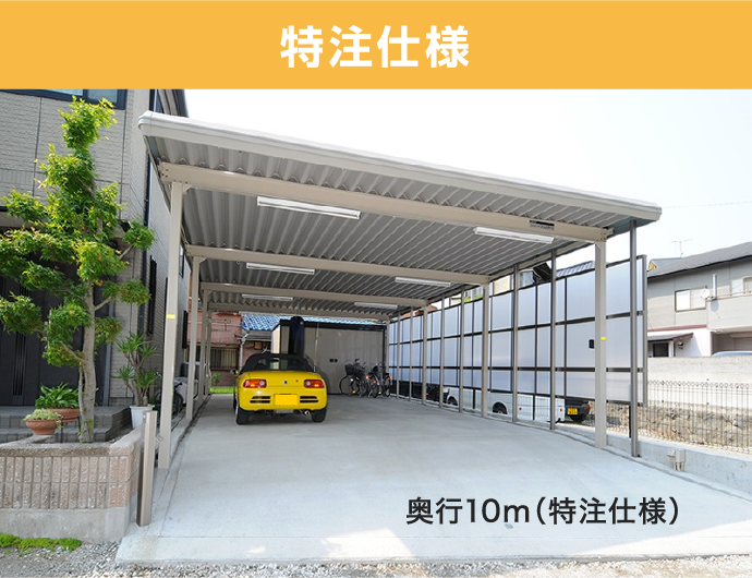 ロングタイプは軒高2.9m。全種の奥行き方向開口部は4m。カスタムカーや特殊車両を駐車しても余裕の広さです。